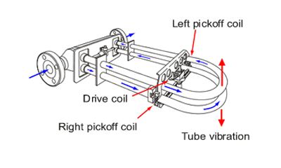 جریان به داخل لوله U شکل هدایت می شود. هنگامی که یک نیروی تحریک نوسانی به لوله اعمال