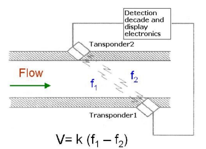 در این روش ارسال و دریافت موج اولتراسونیک طی دو مرحله صورت می گیرد بدین ترتیب کـه ابتـدا یکی از سنسورهاي پیزوالکتریک تحریک و موج ارسالی از سوي سنسور پیزوالکتریک دیگر دریافت و زمان انتقال موج محاسبه می شود. در مرحله ي بعدي جاي فرستنده و گیرنده عوض می شود، که بـه سـبب متفـاوت بـودن جهت ارسال موج نسبت به جهت حرکت سیال زمان محاسبه شده در این حالـت بـا قبلـی متفـاوت بـوده و ایـن تفاوت متناسب با سرعت سیال می باشد. لذا با این روش می توان به صورت اسـتنتاجی سـرعت سـیال را محاسـبه نمود.
