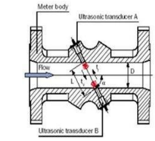 در این نوع فلومتر امواج ارسالی از یک طرف لوله فرستاده می شوند و از سوي دیگر دریافت می شوند .