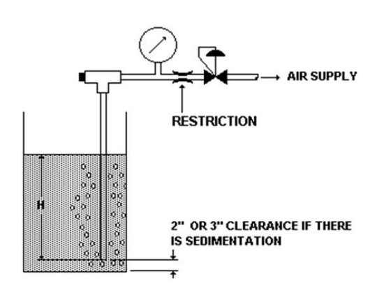 در این روش با ایجاد حباب از کف مخزن یا پایین ترین قسمت مخزن ارتفاع را اندازه گیری